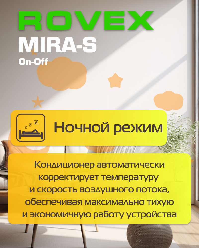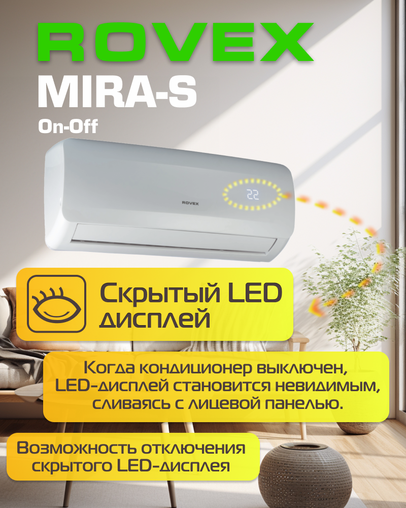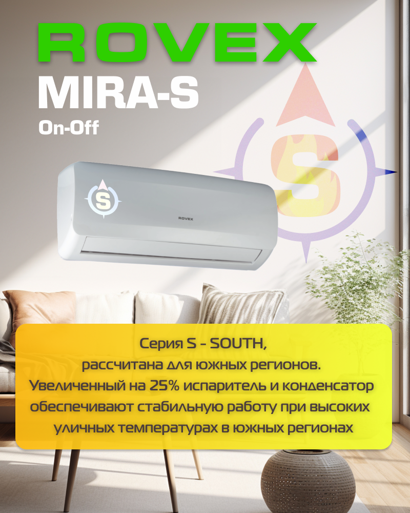 Сплит-система настенная Rovex RS-07AST-S Mira on/off - идеальное решение для вашего дома или офиса. Эта модель сплит-системы предназначена специально для Юга России, где интенсивная солнечная инсоляция и значительные теплопритоки требуют особого внимания к конденсатору и испарителю. Благодаря увеличенным размерам конденсатора и испарителя, сплит-система Rovex RS-07AST-S Mira on/off обеспечивает эффективное охлаждение в самые жаркие дни. Стильный дизайн и компактные размеры делают эту сплит-систему идеальным выбором для любого интерьера. Не откладывайте заботу о комфорте своего дома на потом - приобретите сплит-систему Rovex RS-07AST-S Mira on/off прямо сейчас и наслаждайтесь прохладой в любое время года.
